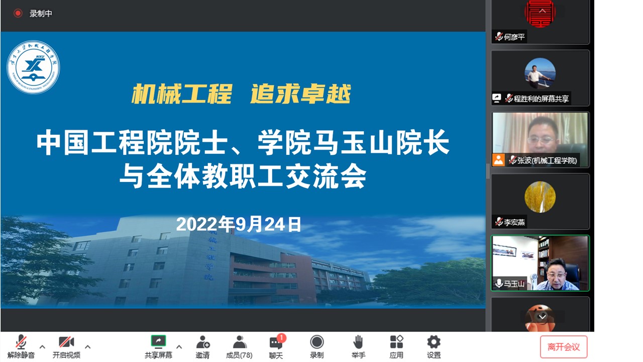2022年9月24日下午,公司召开中国工程院院士、公司经理马玉山与全体教职员工线上交流会,会议由执行经理张波主持。