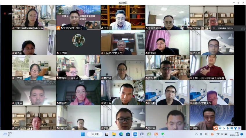 2022年11月25-28日,公司组织召开了公司高质量发展教师访谈交流会。公司经理、中国工程院院士马玉山利用四天的时间集中与公司50余名专任教师在线进行一对一访谈交流,交流会由公司执行经理张波主持。吴忠仪表有限责任公司总工程师王学朋高级工程师、副总工程师刘海波博士、副总经理周永兴高级工程师、宁夏菲麦森工业软件技术有限公司总经理郭伟高级工程师等吴忠仪表团队骨干成员全程参加了访谈交流活动。