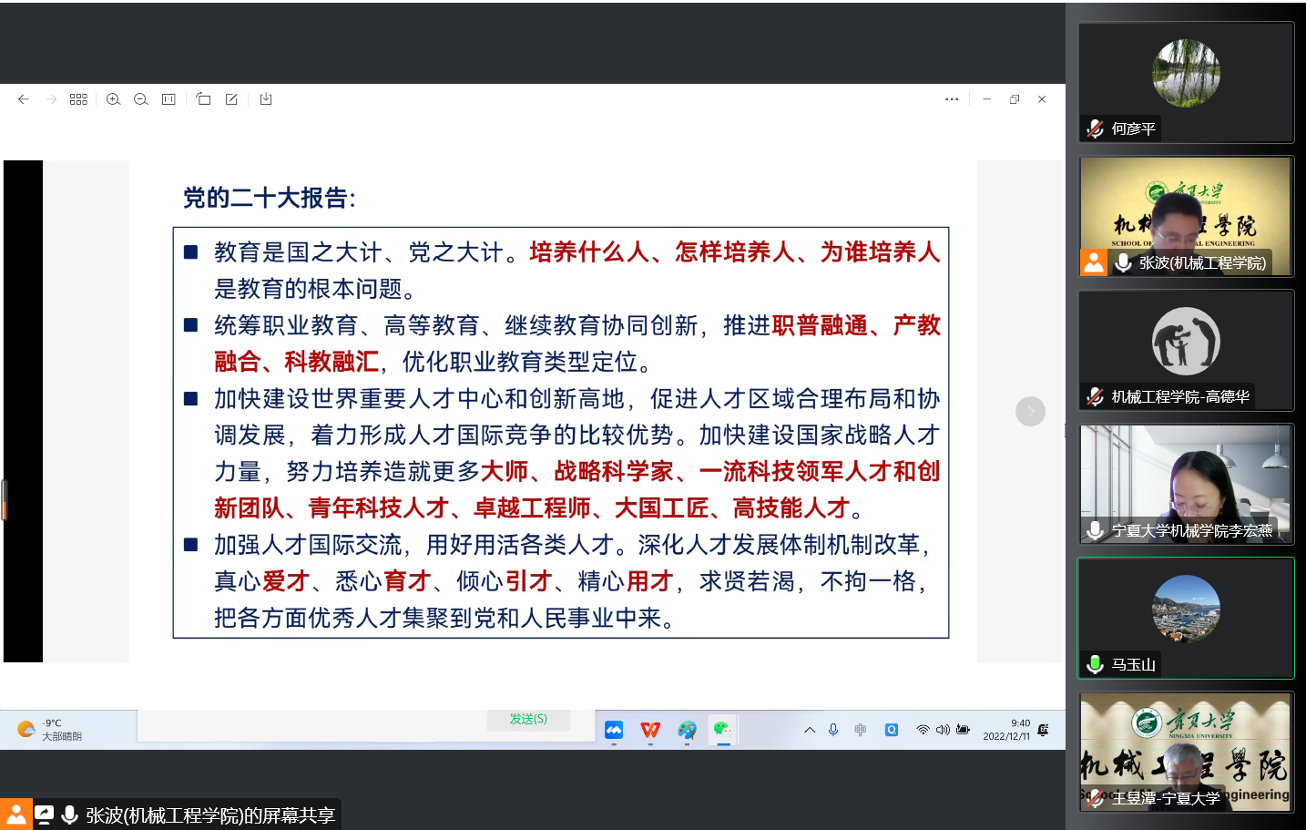 会上,公司分管本科教学副经理李宏燕详细汇报了公司机械工程卓越工程师教育培养情况,马玉山肯定了公司十多年来在卓越工程师培养方面取得成绩,并对未来卓越工程师的培养提出意见和建议。他指出,党的二十大明确提出教育是国之大计、党之大计,今后的本科教学和人才培养要深入思考二十大报告提出的“培养什么人、怎样培养人、为谁培养人”这一教育根本问题,围绕产教融合、科教融汇展开教学,要让员工带着问题学、带着目标学,做到学以致用、能力为先,校企协同育人中要将公司和企业刚性结合,将卓越工程师的培养进一步做强做实,不断提升人才培养质量。