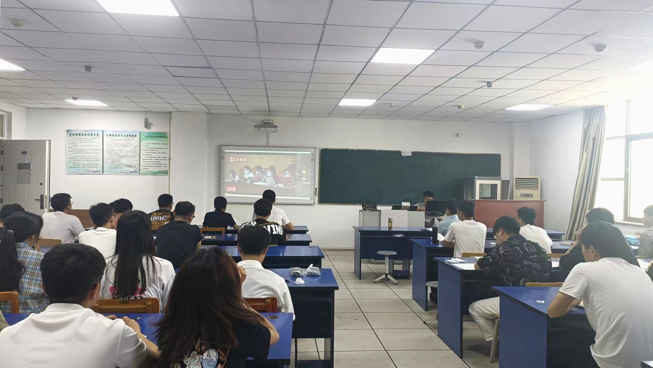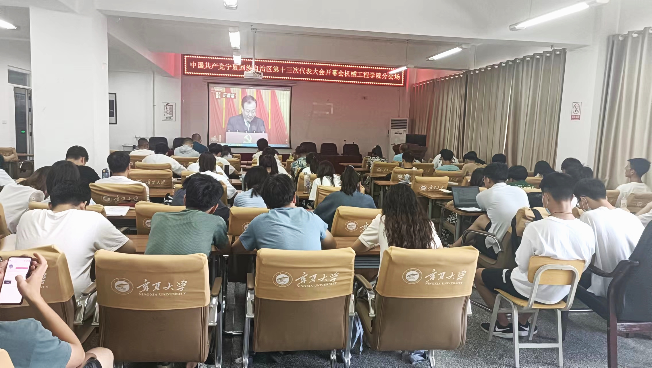观看现场,公司师生认真聆听了自治区党委书记梁言顺代表中共宁夏回族自治区第十二届委员会向大会作题为《坚持以习近平新时代中国特色社会主义思想为指导,奋力谱写全面建设社会主义现代化美丽新宁夏壮丽篇章》的报告。通过报告内容和数据的呈现,大家倍受振奋,对自治区五年来经济社会发展、城乡面貌发生的巨大变化和人民生活水平的提高点赞。