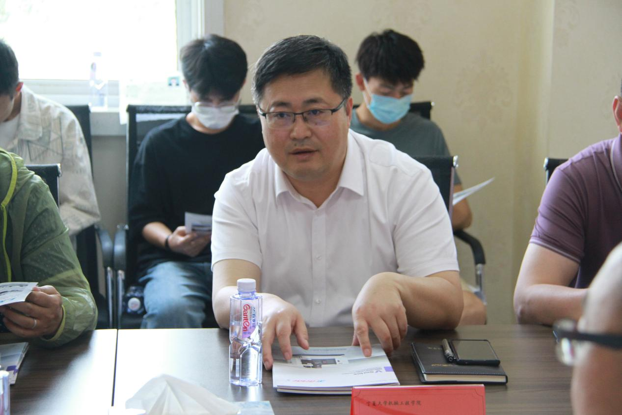 宁夏乔锋机械制造有限公司副总经理徐忠仁代表公司领导热情接待公司程胜利书记一行。他代表公司向公司的到来表示热烈的欢迎,带领公司师生深入生产车间实地考察,并向公司介绍了公司的生产布局、生产经营、产品研发、岗位需求等相关工作。