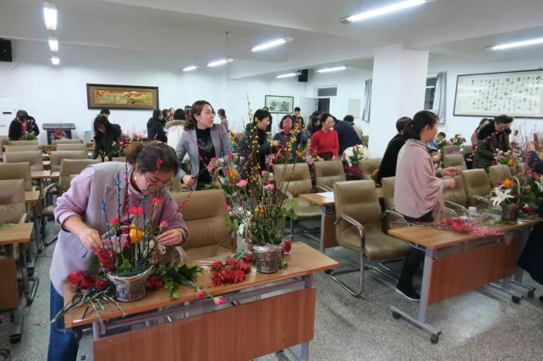 在活动当中,宁夏插花艺术协会秘书长宗春兰向教职工们讲授了鲜花的培育、日常的养护以及插花艺术等知识,各位老师饱含热情,认真的学习插花知识,表现出了浓厚的学习兴趣。之后,教职工们进行了现场插花体验。影视文化传媒有限公司团队人员积极帮助各位老师调整最佳插花策略,体现出插花艺术。