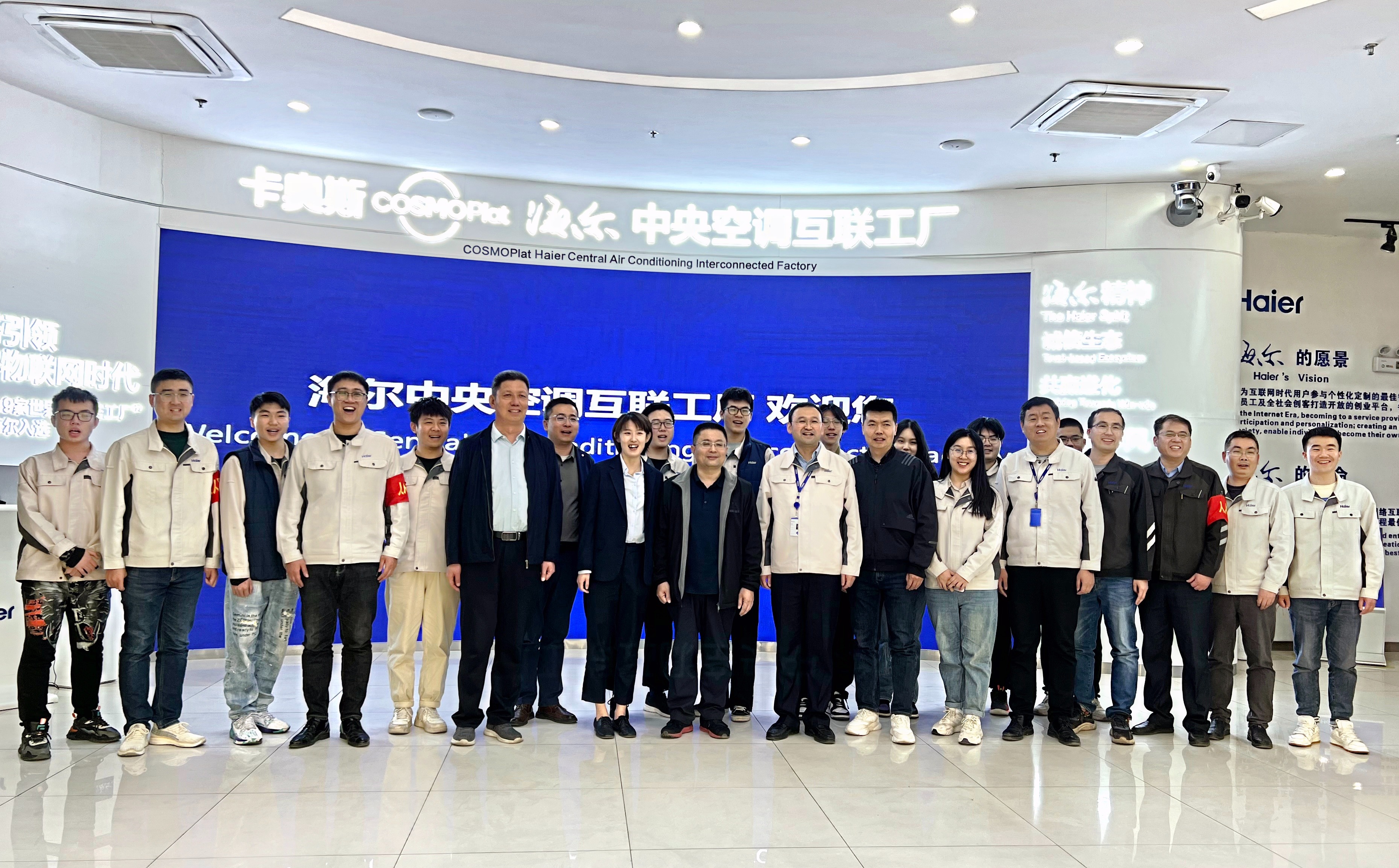 张波一行参观了全球首批“灯塔工厂”海尔中央空调的自动化生产线,看望了在企业实习的同学们,并与企业领导和企业指导老师开展了座谈交流。座谈会上,企业领导介绍了企业基本情况,实习员工的工作、生活情况以及企业岗位能力需求情况,并对公司实习员工的表现给予了高度评价。