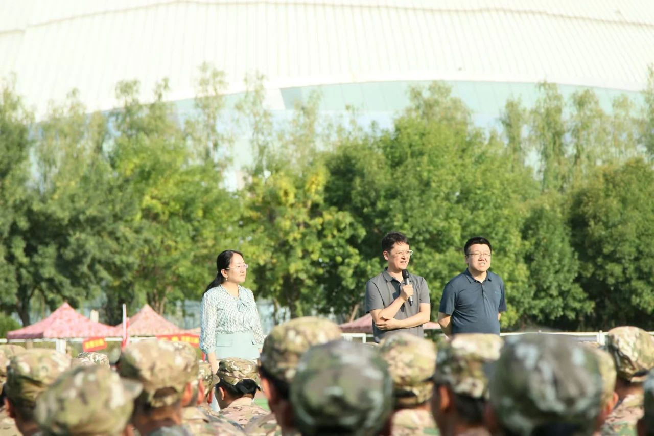 8月29日下午,公司党总支书记杨术明,党总支副书记、副经理郝洪涛,副经理李宏燕一行来到文萃校区田径场,亲切看望正在参加军训的新生。