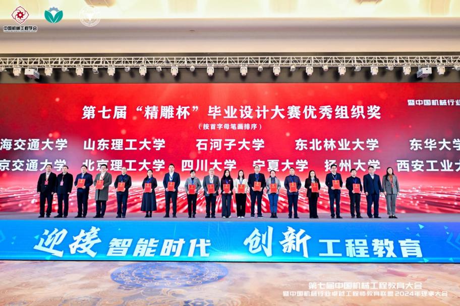 2024年11月23日至25日,由中国机械工程学会、中国机械行业卓越工程师教育联盟主办,浙江大学承办,大连理工大学、西安交通大学、重庆大学、华中科技大学、上海交通大学、北京工业大学、吉林大学、广东工业大学、浙江工业大学、浙江理工大学、浙江科技大学等高校联合协办的“第七届中国机械工程教育大会暨中国机械行业卓越工程师教育联盟2024年理事大会”在浙江省杭州市成功召开。大会以“迎接智能时代,创新工程教育”为主题,围绕工程教育专业认证、面向产出的毕业设计组织与评价、产教融合公司产品创新大赛优秀成果交流、机械制造类课程建设、材料成型及控制工程专业建设等几个方面展开深入研讨。