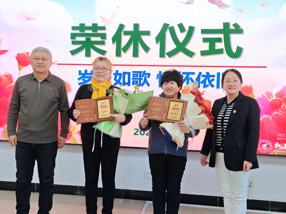 公司领导为荣休教职工代表颁发纪念牌