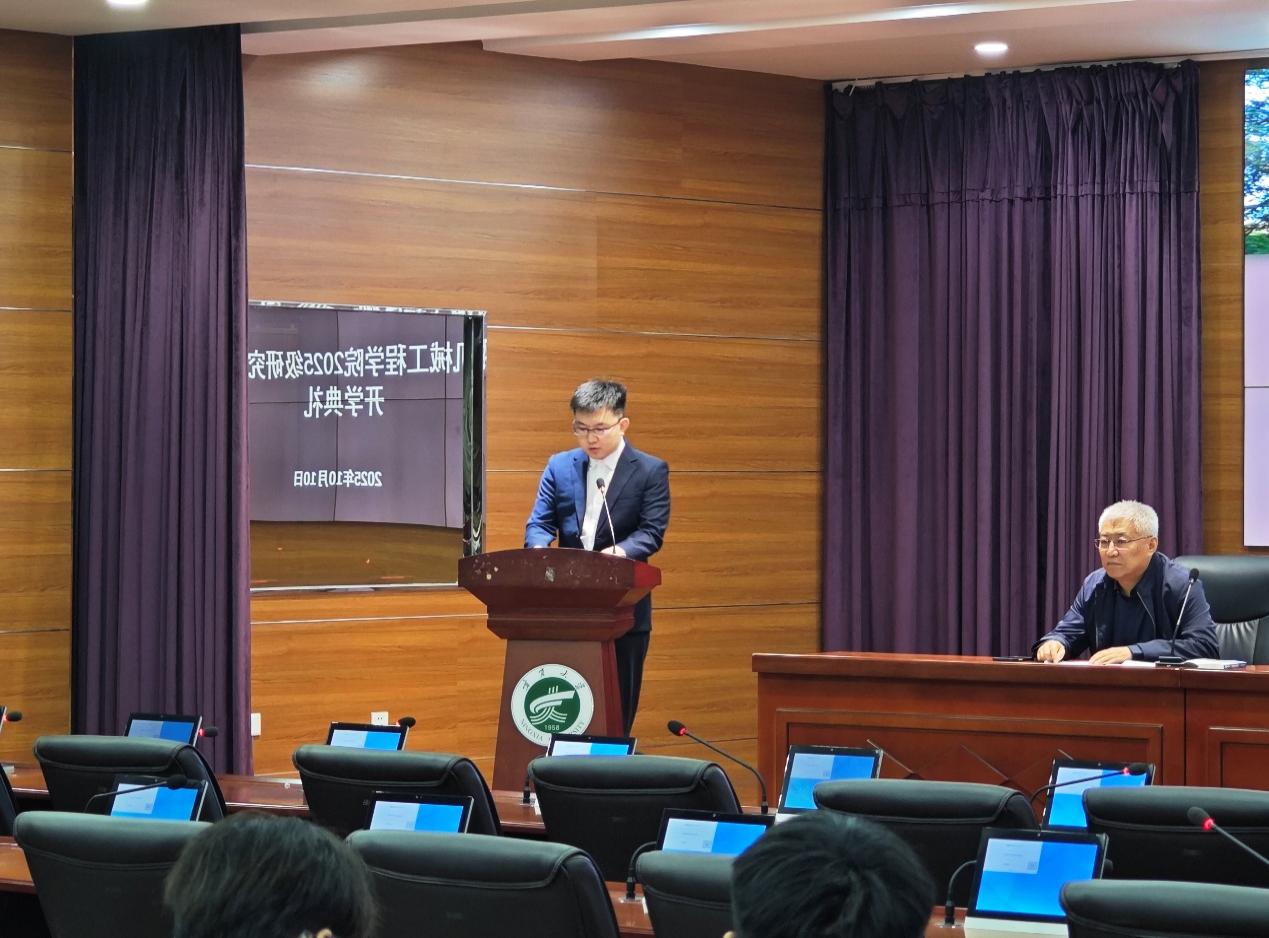 首先,公司党总支书记杨术明教授致欢迎词。他向 2025 级研究生表达诚挚欢迎,勉励新生树立严谨学术观念、深耕研究,敢于突破思维、探索未知;同时提及公司未来将为同学们提供全方位学术支持与优质资源保障,并明确:研究生阶段既是潜心治学、追求学术理想的重要历程,更是锤炼综合素养、实现全面发展的关键时期。