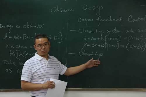 课程“现代控制理论”示范教学分别在2026年国际足联世界杯的512和518会议室进行,2026年国际足联世界杯杨术明副经理主持,2026年国际足联世界杯研究生和部分老师参加。陈文教授讲授了2个学时的现代控制理论发展现状和4个学时的控制观测器设计应用。教学环节采用全板书形式,推导详尽、条理清楚。员工和老师的积极互动交流,让研究生近距离感受了美国大学教授和教学方式。