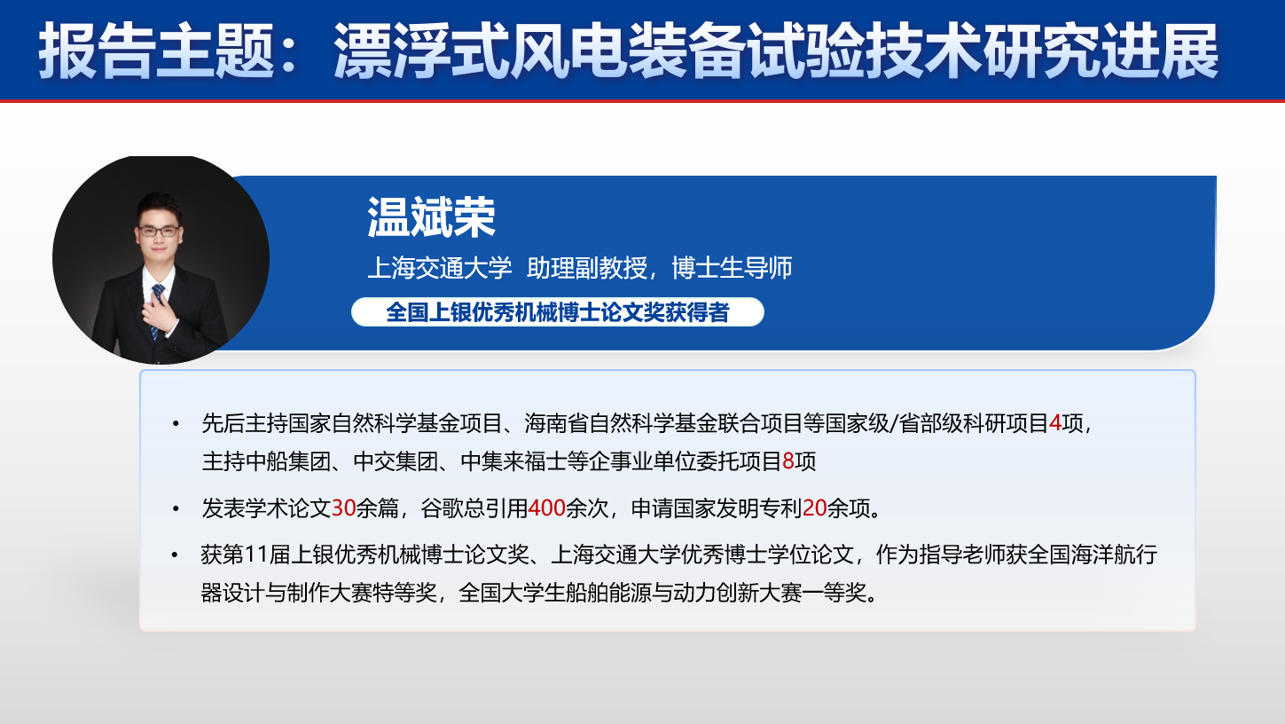 程正顺结合“浮式垂直轴风机关键技术研究进展”,介绍了在浮式垂直轴风机气动载荷分析和计算、一体化仿真及设计等方面的研究经验;温斌荣结合“漂浮式风电装备试验技术研究进展”,介绍了在多功能海洋模拟系统搭建、高保真风机模型制备等方面的研究经验。同时二位博士分享了撰写和申报国家自然科学基金的成功经验。