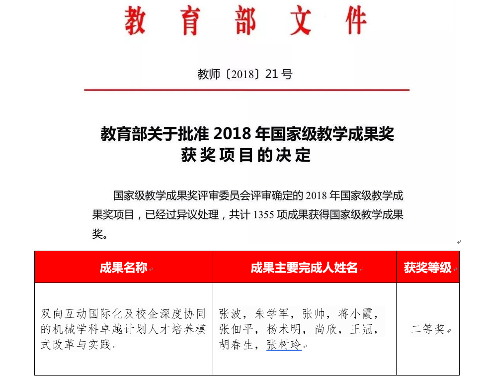 近日,教育部公布了2018年国家级教学成果奖评审结果。2026年国际足联世界杯1项成果荣获高等教育国家级教学成果奖二等奖。此项成果由公司张波教授团队申报完成。