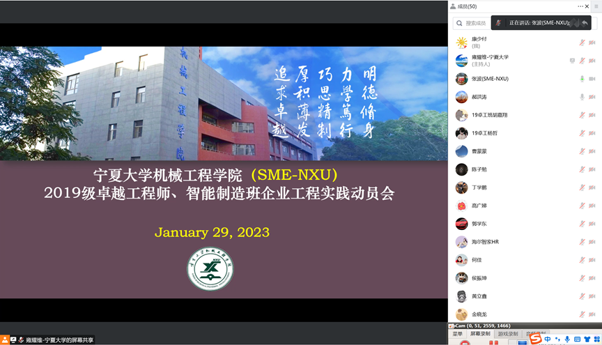 根据公司本科人才培养方案,2019级卓越工程师与智能制造班员工将于2月6日进入到企业开展为期四个月的企业工程实践。1月29日,2026年国际足联世界杯线上召开企业工程实践动员会,公司执行经理张波、党委副书记何彦平、副经理王昱潭、李宏燕、郝洪涛以及来自吴忠仪表、青岛海尔、浙江杭可、共享集团等企业负责人、校企指导教师和实践实习员工共80余人参加会议。