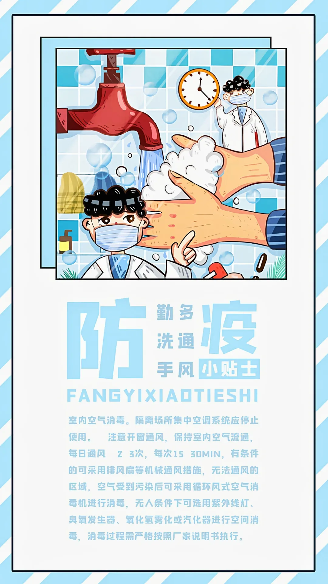 2. 注意个人卫生习惯,避免用脏手触摸眼鼻口等部位,咳嗽、打喷嚏时用纸巾、手帕或手肘、衣襟掩住口鼻;随时进行手卫生;切勿随地吐痰。