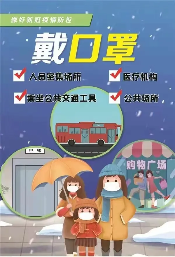 1.在公司、医院、商场、超市、影院、KTV、厢式电梯等人员密集或密闭的场所和乘坐公共交通工具时,应佩戴一次性医用口罩或医用外科口罩。