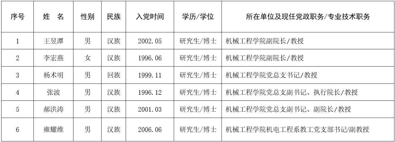 根据公司组织部《关于进一步规范基层党组织建设工作的通知》(组织部〔2023〕7号)精神和要求,结合公司党员实际,按照20%的差额比例推荐6名公司党总支委员候选人预备人选,经向全体党员征求意见后予以公示,名单如下表。
