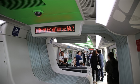比亚迪自主研发了轨道驱动、电机、底盘、通信信号系统等全产业链的核心技术,成功打造出了新型的跨座式单轨——云轨。它是我国第一条具有完全自主知识产权的跨座式单轨列车,也是比亚迪全球第一个投入商业运营的云轨项目。