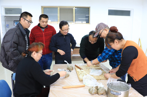 校工会孙宝德主席也来到了老师们中间,他一边包饺子一边和老师拉家常,关心教职工的生活、工作情况。最后孙主席和公司党政领导一起到各小组看望基层教职工,并致所有教职工新年快乐!