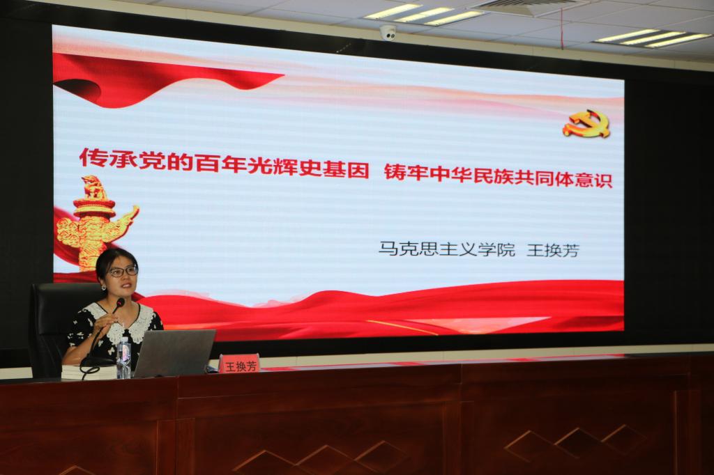 王换芳紧密结合党的百年奋斗、百年征程、百年探索,立足宁夏发展实际,围绕“中华民族概念的历史演变”、“高度重视民族工作是贯穿中国共产党百年历史的一条红线”、“传承百年光辉史基因,增强铸牢中华民族共同体意识的政治自觉”三个方面,系统讲解了铸牢中华民族共同体意识的科学内涵和时代意义。