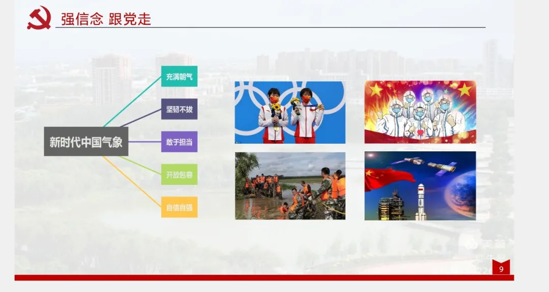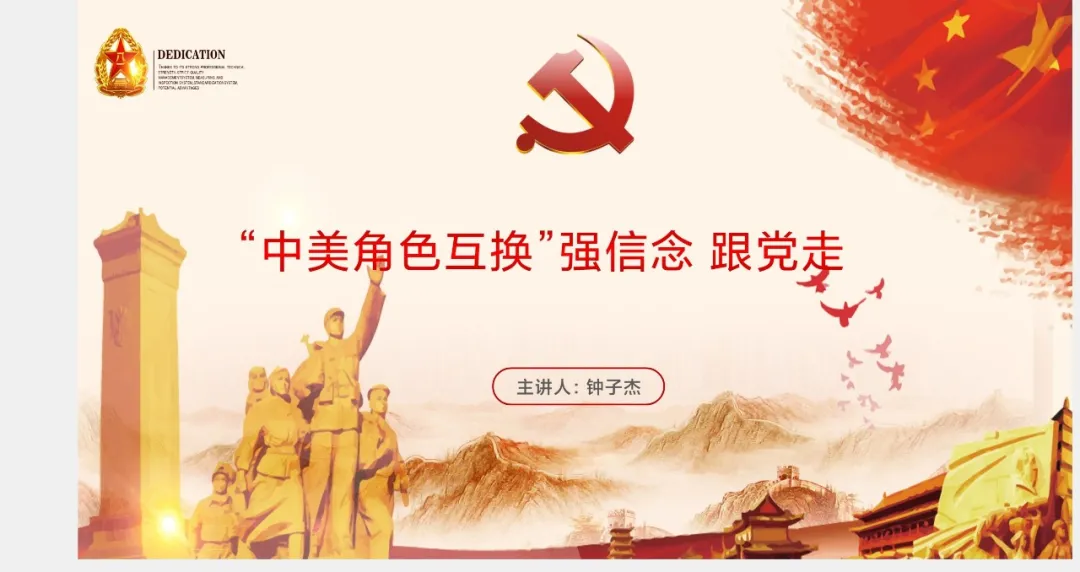 接着,钟子杰以“强信念,跟党走”为切入点,讲述了新时代中国充满朝气,开放包容的新气象,号召青年们坚定不移地团结在党的周围,牢记初心使命,立大志,明大德,成大才,担大任,时刻保持清醒的头脑,为实现中华民族百年复兴而努力。