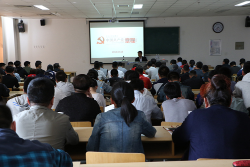 2018年4月18日,公司党委邀请公司纪委副书记陈军胜同志进行了以学习贯彻新党章为主题的党课教育,公司党委书记钟子杰同志主持学习,全体共产党员共136人参加了教育。