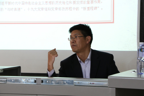 陈军胜书记从“修改背景、历史进程、修改内容”三个方面进行了讲授。他指出,党的十九大对《中国共产党章程》进行了重要修改,这次修改后党章有许多新的内容和新的亮点,学习贯彻修改后的新党章是当前各级党组织、全体党员和领导干部一项重要的政治任务,也是一项党的要求。