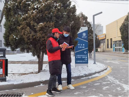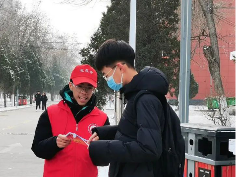 志愿者们耐心地指导同学们阅读宣传单,同学们也与身边的人相互交流讨论,同时对志愿者们的辛苦付出表示感谢。冷冽的寒风未能打消志愿者们的积极,宣传工作如火如荼地进行着。