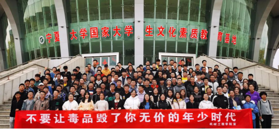 最后,同学们带着对毒品的深刻认识走出展馆,来到展馆门前合影留念。同学们表示:一定要远离毒品,珍爱生命。用自己的一言一行深入践行“群策群力参与禁毒,同心同徳珍爱生命”的使命。