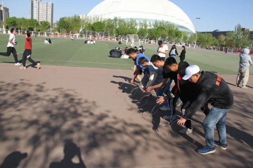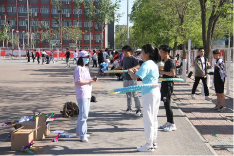 活动开始,同学们纷纷投入到健身运动之中,有的跳绳,有的滚铁环,有的转呼啦圈,有的踢毽子。他们的欢笑声同脸上的汗水一道,在阳光下绽放青春的神采,既锻炼了身体,也收获了快乐。