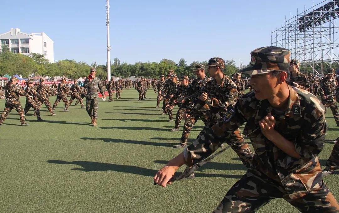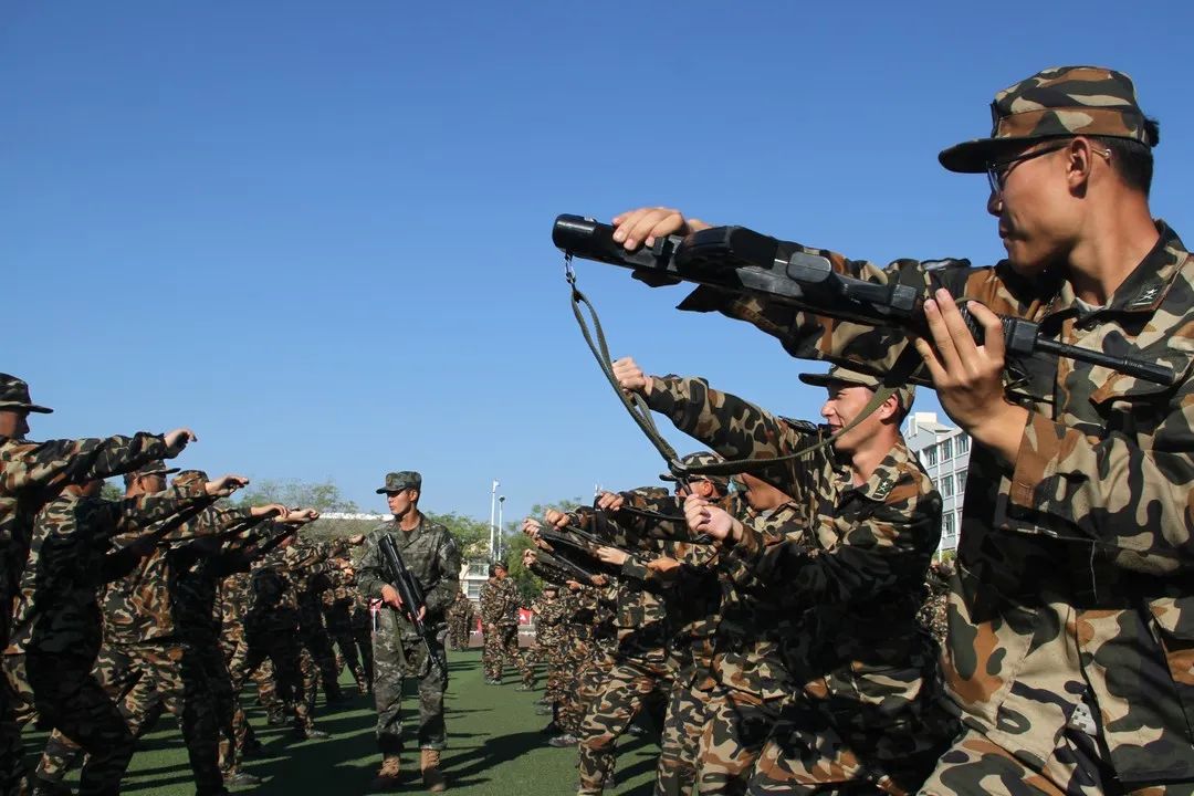 今日的军训场上,新生们正在练习着刺杀操——突刺、防左侧击、上步撞击、外拨转身刺……一系列的动作被新生们快、准、狠的展现出来。经历了前七日在烈日下挥汗如雨、腰酸腿痛的时光,如今新生们每一次的落脚都铿锵有力,每一次的整队都迅速有序,每一句的口号都气壮山河。一突一刺、一防一击,豪情壮志,精神抖擞,尽显公司风采。