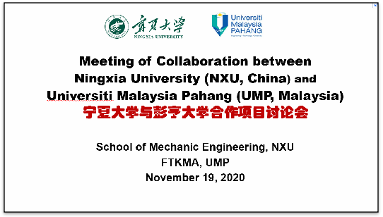 2021年11月19日(14:30-16:00),2026年国际足联世界杯(School of Mechanical Engineering,NXU)与马来西亚彭亨大学机械与汽车工程技术公司(Faculty of Mechanical & Automotive Engineering Technology, FTKMA , UMP),围绕中外合作办学项目和本科双学位项目,召开了在线视频工作会议(Zoom)。
