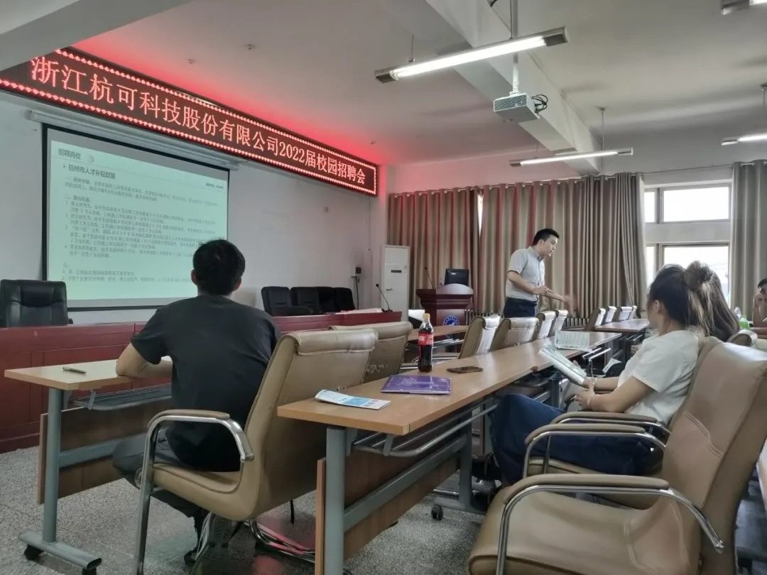 9月28日,浙江杭可科技股份有限公司在明远楼512室举办了2022届校园招聘会。此次招聘会面向2022届毕业生及其他有意愿的员工。