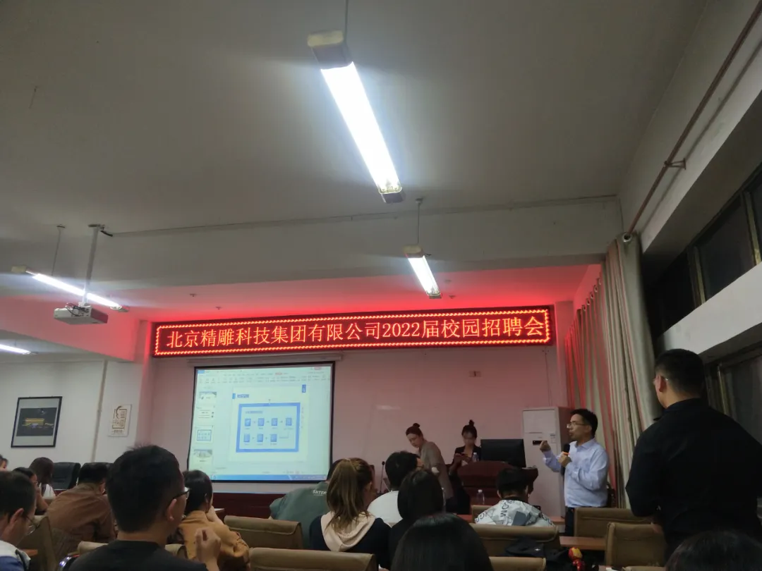 9月27日,北京精雕科技集团有限公司于明远楼512室举办了2022届校园招聘会,此次招聘会面向2022届毕业生以及其他有意愿的员工。