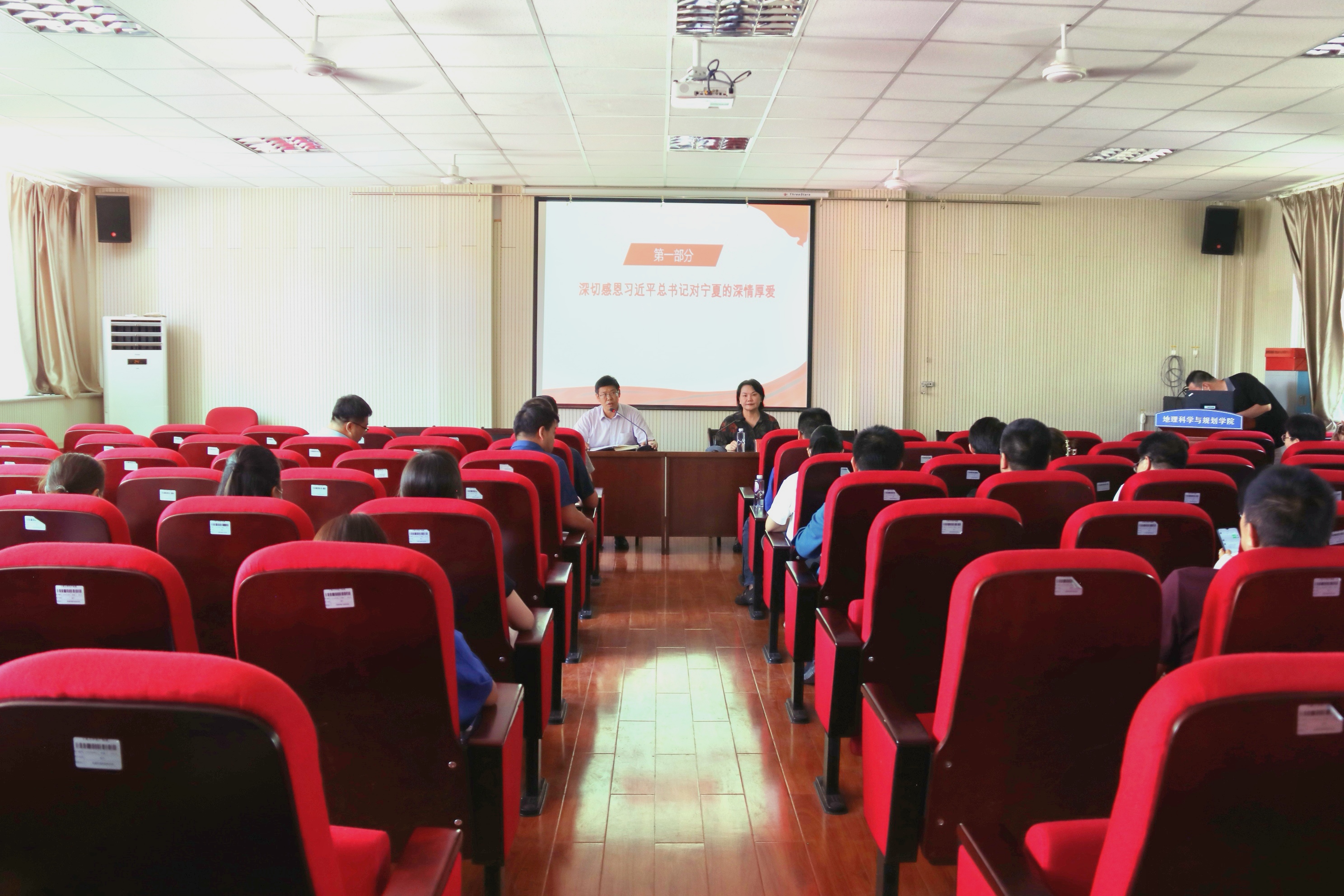 周萍从“深切感恩习近平总书记对宁夏的深情厚爱”“深刻感悟习近平总书记视察宁夏重要讲话和重要指示批示精神”和“努力践行习近平总书记重要讲话精神”三个方面对习近平总书记视察宁夏重要讲话精神进行了解读,她讲到,“社会主义是干出来的”,宁夏作为我国西部欠发达地区,我们应当积极响应习近平总书记的号召,埋头苦干,真抓实干,为中华民族伟大复兴做出应有的贡献。
