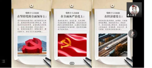 她强调,党的十八大以来,党中央始终坚持党的全面领导、坚持全面从严治党,在政治、经济、法制等方面的建设不断发展,为新时代开创党和国家事业新局面提供了坚定思想保证和强大的精神力量。身为新时代国家建设的有生力量,各位同学要始终坚定拥护和维护习近平总书记的核心地位,将党的理论知识学习与实际行动进行有机结合,坚守理想信念、担当历史使命,以党史为明镜,创祖国之未来。