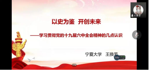 党课开始,王换芳老师就全会召开背景向同学们做了介绍。她讲到,回顾中国共产党艰苦奋斗的百年历史,我们党始终践行为人民谋幸福的初心和使命,团结全国各族人民不断奋斗,带领全国人民从“站起来”到“富起来”再到如今的“强起来”,取得了令人瞩目的成就,这也是我党不断回顾历史、总结经验,从历史中汲取前进智慧和力量的结果。