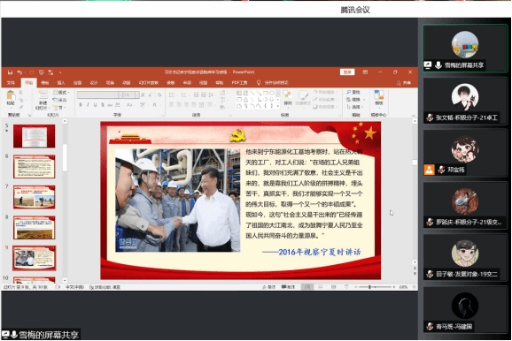 本次主题党课的成功开展,激励了同学们拥护党的绝对领导,以服务人民为己任,坚定信念,把总书记的肯定鼓励转化为强大动力和必胜信心,携手同心共迎党的二十大胜利召开。