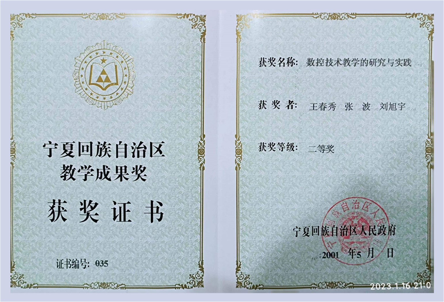 1. 2001年:数控技术教学的研究与实践(二等奖)