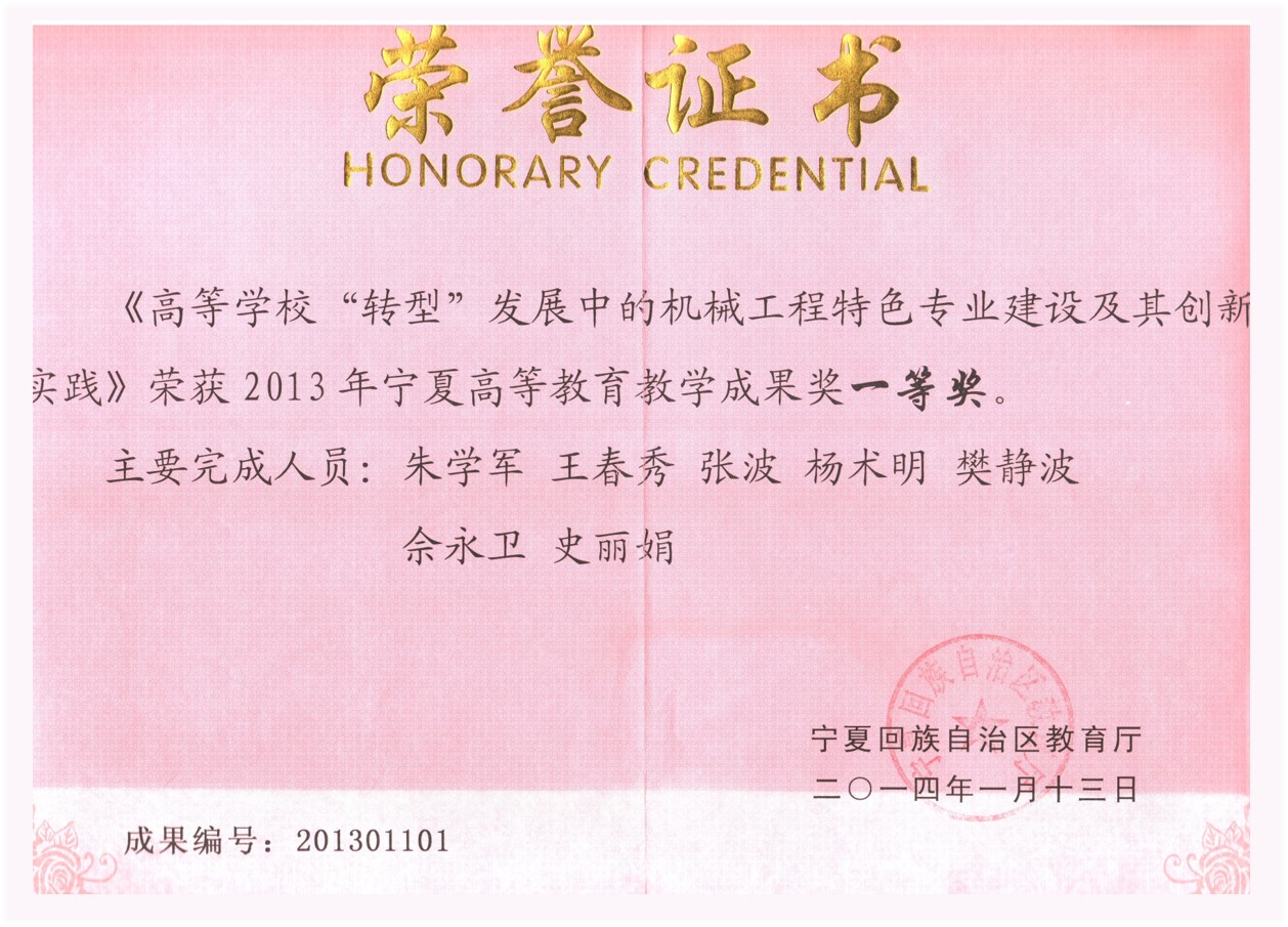 1. 2014年:高等公司“转型”发展中的机械工程特色专业建设及创新实践(一等奖)