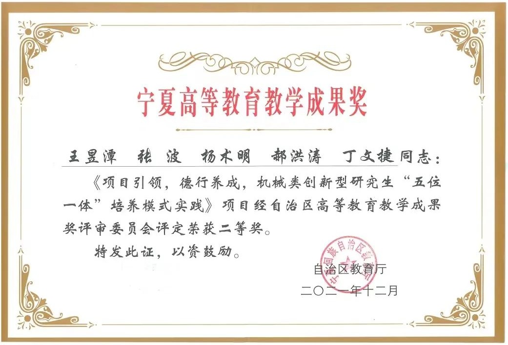 2. 2021年:项目引领,德行养成,机械类创新型研究生“五位一体”培养模式实践(二等奖)